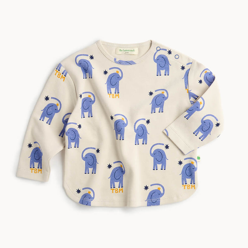 Designed with a curved hem for extra bum coverage and a relaxed silhouette, this elephant tee is ideal for layering. Baby sizes (0–24M) include shoulder snap fastenings for quick, fuss-free dressing. The charming placed elephant graphic adds a playful twist to this everyday essential.
